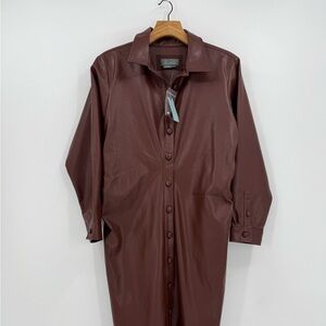 by Anthropologie Fuax Leather Midi Shirt Dress In Brown Size 1X Plus Size