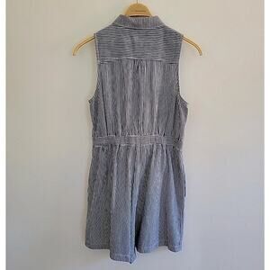 by Anthropologie Striped Linen Cotton Sleeveless Collared Romper Nautical Preppy