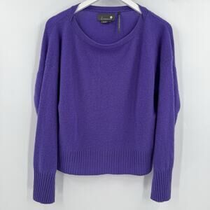 by Anthropologie The 100% Cashmere Collection Solid Purple Sweater Ribbed Round Scoop Neck Long Sleeves Relaxed Fit Pullover Casual Lightweight Knit