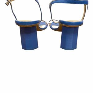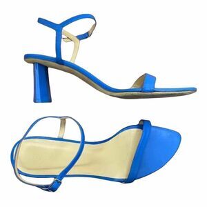 by FAR Magnolia Ankle Strap Handmade Leather Heeled Sandals Marine Blue