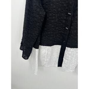 by JJ Black White Colorblock Button Down Blouse 3/4 Sleeve Textured Artsy Large