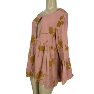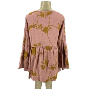 by Timo Small Women Embroidery Floral Boho Bell Sleeves Blouse Top Key Hole T12