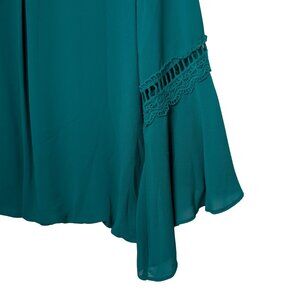 by & by Women's Large Blouse Top Shirt Emerald Green Bell Sleeve