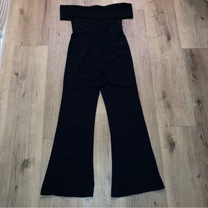 by the way x Revolve Aubrey Black Off-Shoulder Jumpsuit with Flared Legs