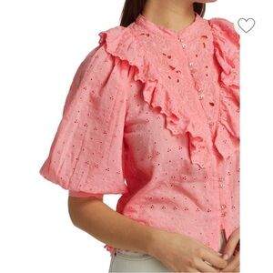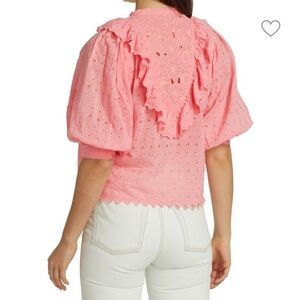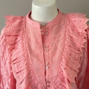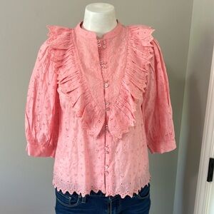 byTiMo Broderie Ruffle Trim Anglaise Shirt Pink Eyelet Puff Sleeve Top Sz XS NEW