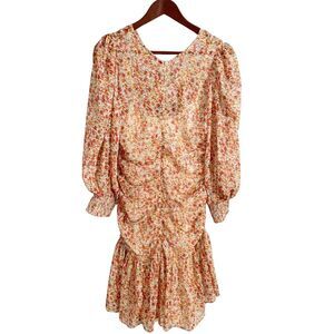 byTiMo Chiffon Rouched Mini Dress Sheer Flowers Medium