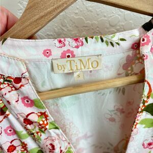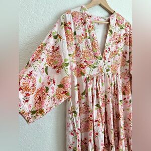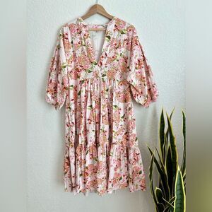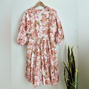 byTiMo Pink Floral Puff Elbow Sleeve Flowy Midi Dress Size Small
