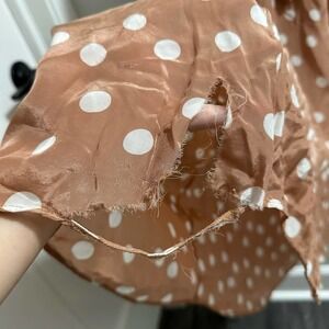 Flaws: There is a rip on the right bottom front of the dress. Also, the elastic band in the arms are outstretched.