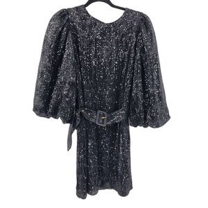 byTiMo Sequined Cocktail Puff Sleeve Mini Dress L Black Open Back Statement