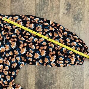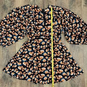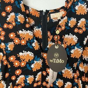 byTiMo Poppyfield Black Orange Floral Mini Dress Puff Long Sleeve V-neck sz M
