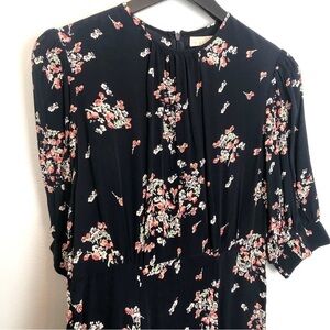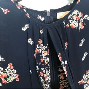 Key words: floral, elastic sleeve, cap sleeve, zipper, keyhole, key hole, flowers