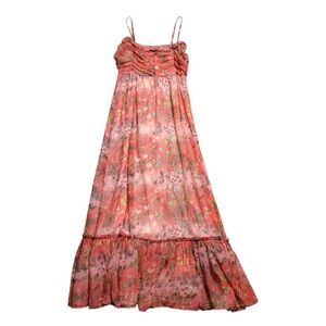 Bytimo •Smocked •Available stretch in bust and waist •Sleeveless •Summer •Maxi •Vacation •Travel •Back Zipper •Ruffle Details •Floral Print •Chiffon •Lined •Sold at Revolve