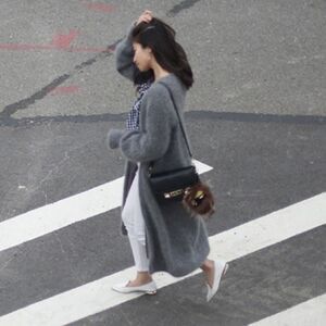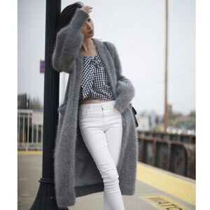 These cardigans from byTsang's classic collection are gently worn and feature an oversized fit with puff sleeves and pockets. Some details include side pockets with snap buttons and a hidden inside pocket. The shell is made of a 100% fine wool blend, while the lining is 100% satin.