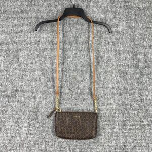 Calvin Klein Purse Brown Logo Print Crossbody Bag Chain Strap Luxury Old Money