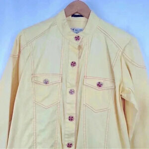 c. a. sport Women Back Printed & Beaded Casual Yellow Cotton Summer Jacket Sz M