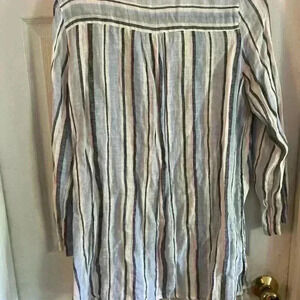 c and c california 100% Linen Shirt Blouse Small Oversized Pink Strip Tassels