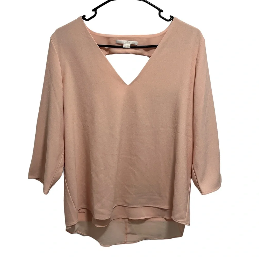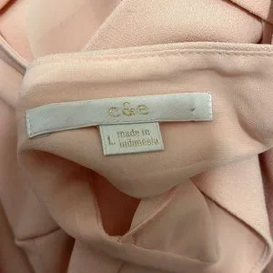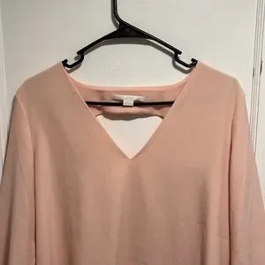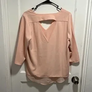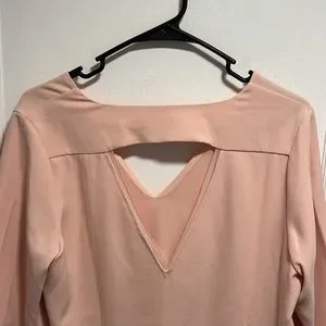 c & e Light Pink Long Sleeve V Neck Blouse with Back Cutout