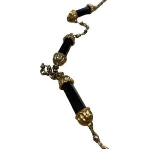 c wonder christian siriano Signed Black Glass Gold Tone Statement Necklace