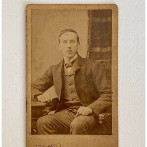 c1870 Antique CDV Light Eyed Man Suit Vest Bowtie Portrait Carte De Visite Photo