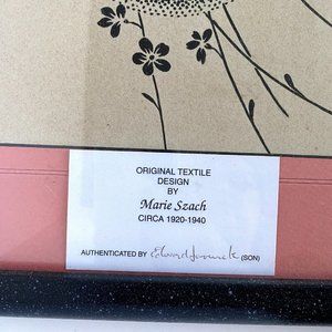 Vintage Circa 1920-1940 Marie Szach Original Ink Drawing Textile Design Artwork Framed Painting.