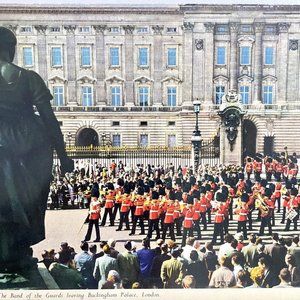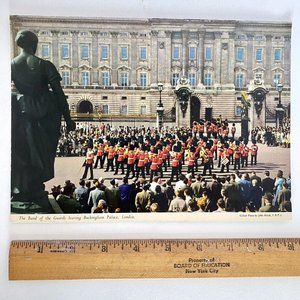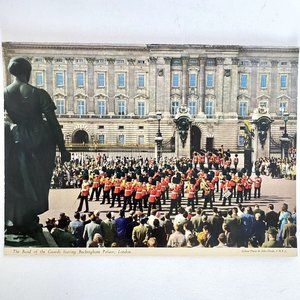 Circa 1960s Band of Guards Leaving Buckingham Palace, London, UK Giant Jumbo Postcard 6x9in Unposted.