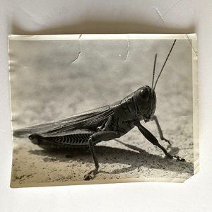 Vintage Circa 1970 Original Grasshopper Close Up Black & White Photograph.