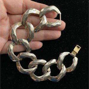 c1980’s Vintage Chunky Faceted Rings Light-Gold Tone Bracelet 8”