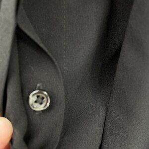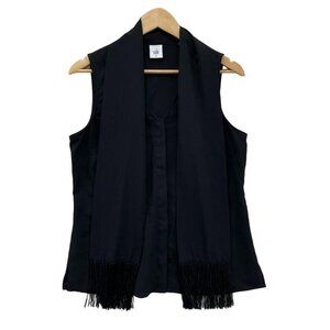 cAbi Fringe Button Front Blouse Top Womens Medium Black Polyester Scarf #3430