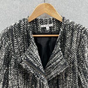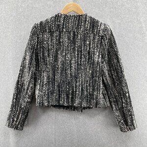 cAbi Over the Moon Tweed Jacket Womens 8 Black Gray Asymmetrical Zip Wool Blend