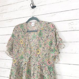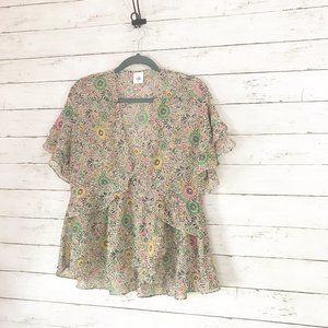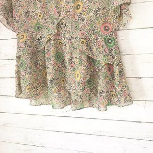 cAbi Tan Poet V-Neck Sheer Floral Blouse - Small