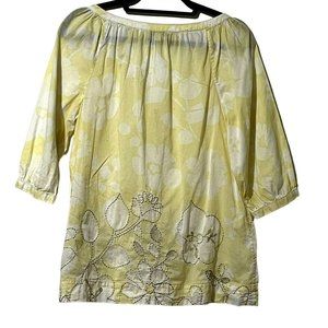 cAbi size M butter yellow floral print lightweight embroidery semi sheer top
