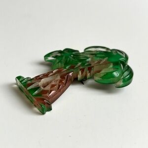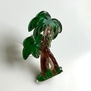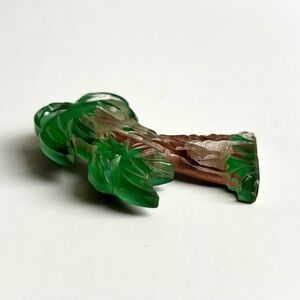 ca 1940s Lucite Reverse Painted Carved Palm Tree Brooch