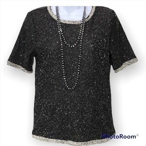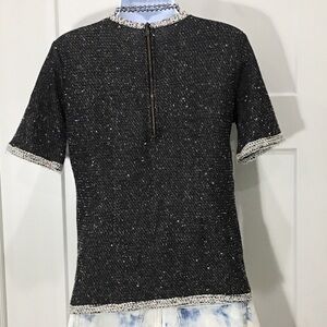 cabi 542 coco shell black knit rear zip top short sleeve sweater size small