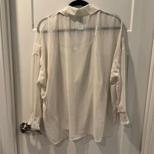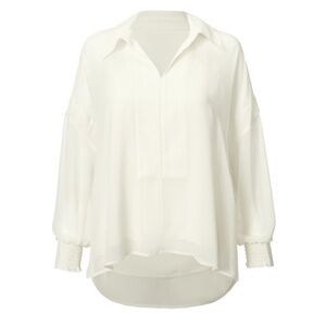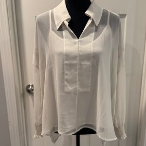 cabi Abbey Blouse, Style #6291, Size S, NWOT, Ivory, Longsleeve, Removable cami, Chiffon. High Low hem with side slit, Oversized, Boxy fit. Measures: 27" arm pit to arm pit and 26 1/2" length,