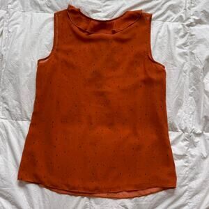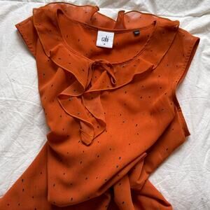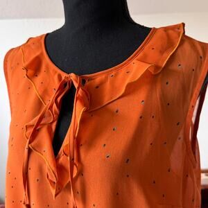 cabi Orange sprinkle dot sheer flowy shift blouse sz m ruffles romantic cottage