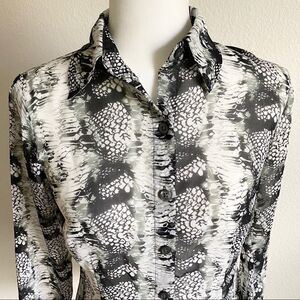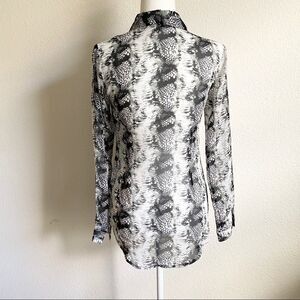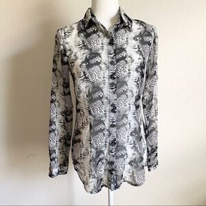 cabi Python Snakeskin Print Sheer Long Sleeve Lightweight Button Down Top XS