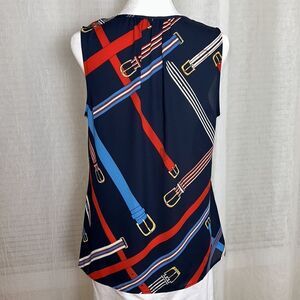 cabi S Agent Americana Navy Multicolored Belts Sleeveless Tie Front Blouse