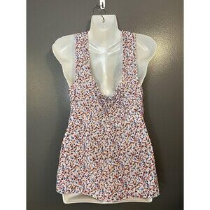 cabi Tank Top Womens Medium White Multicolor Confetti Print Knot Front 6314