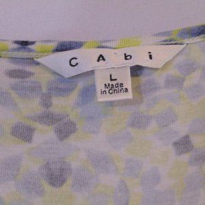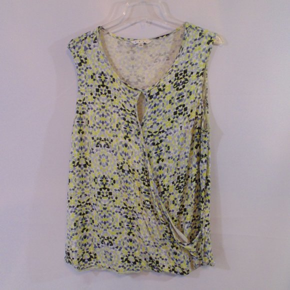 Cabi Crossover mosaic top style 257. green, white, yellow. Large. Sleeveless. Keyhole front round neck. 23" Back collar to hem, 21" pit to it, 20" front collar to hem. Great condition. No holes, tears or stains. Please see pictures for greater details.
