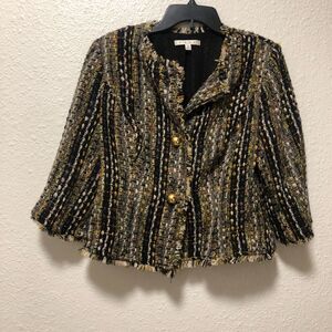 cabi wool crop jacket medium m blazer black gold chic city classic i6