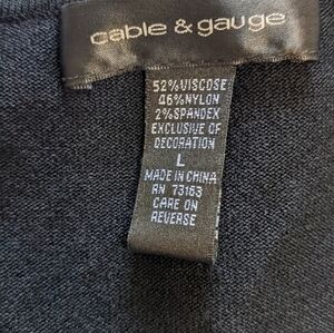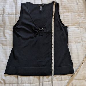 cable & gauge sleeveless medium weight top size Large. this top almost feels like a really tightly knit sweater. there's a fun detail at the bottom of the v-neck chest and it's in great condition