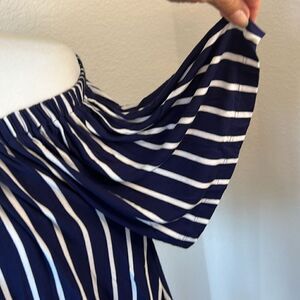 cable & guage Vertical Striped Off the Shoulder Flutter Sleeve Top ~ Size Medium