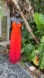 I show this dress two ways. It’s tied around my mannequin, but I realized it is a strapless as well when I looked inside and saw the rubber eye strip around the top. So you can tie that tie above the keyhole either in the front and make a strapless or around your neck. This is a deep orange poly fabric that hombre’s to a burgundy or cherry. The bus line is potted and there is an embellished faux ruby at the keyhole. In excellent condition.