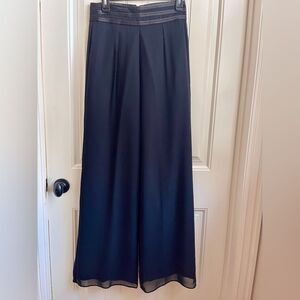 cachet wide leg evening pants palazzo solid black sheer overlay size small