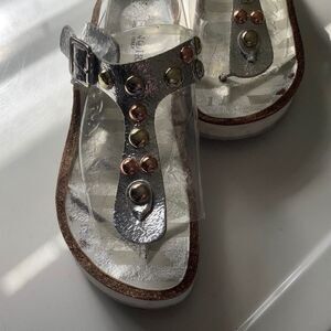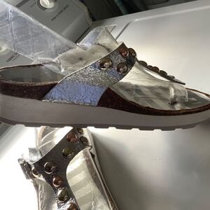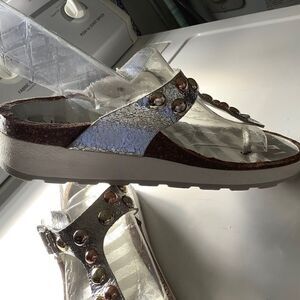 CAFENOIR MADE IN ITALY SILVER METALLIC GENUINE LEATHER WOMAN THONG SANDALS EU39/US 8.5
