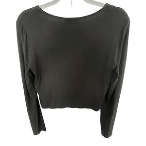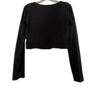 Square neck long sleeve cropped shirt. 2 ruched seams go top to bottom, giving it a feminine, flattering texture.