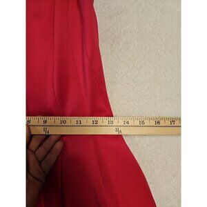 This Calvin Klein dress is perfect for any summer occasion. The sleeveless A-line design features a round neckline and a back zip closure. The dress is made of a solid pink color with mesh trim accents and is lined for added comfort. The fit and flare style is perfect for any formal or party event. This dress is available in size 4 and is made for regular sizing.