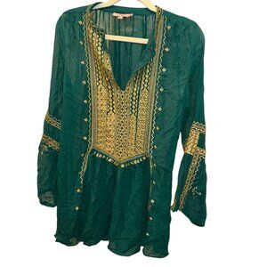 calypso st barth forest green gold metallic embroidered tunic top S HOLIDAY XMAS