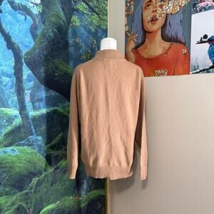 description: timeless camel cashmere mock neck sweater with a slouchy relaxed fit. soft and minimal design perfect for layering or cozy neutral outfits. luxe feel and lightweight warmth.
