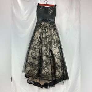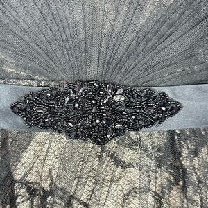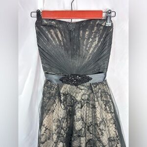 camille la vie black lace midi fit and flare dress with rhinestone belt size 4
